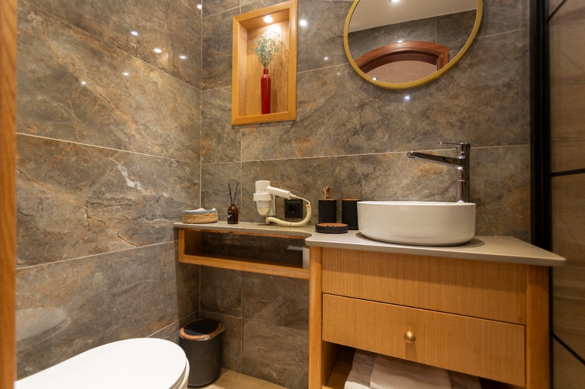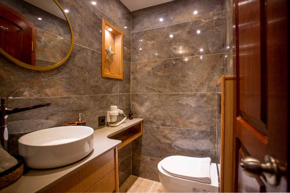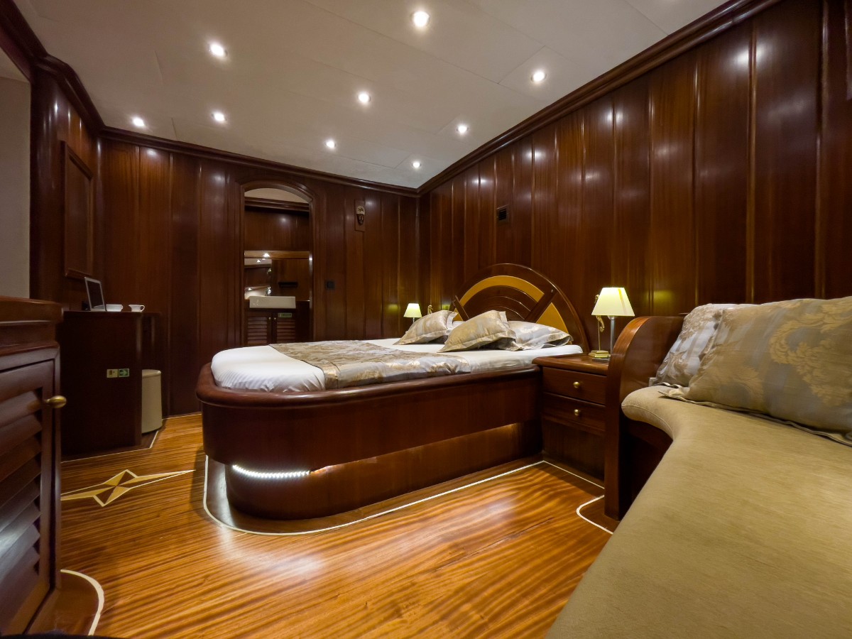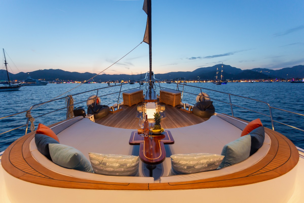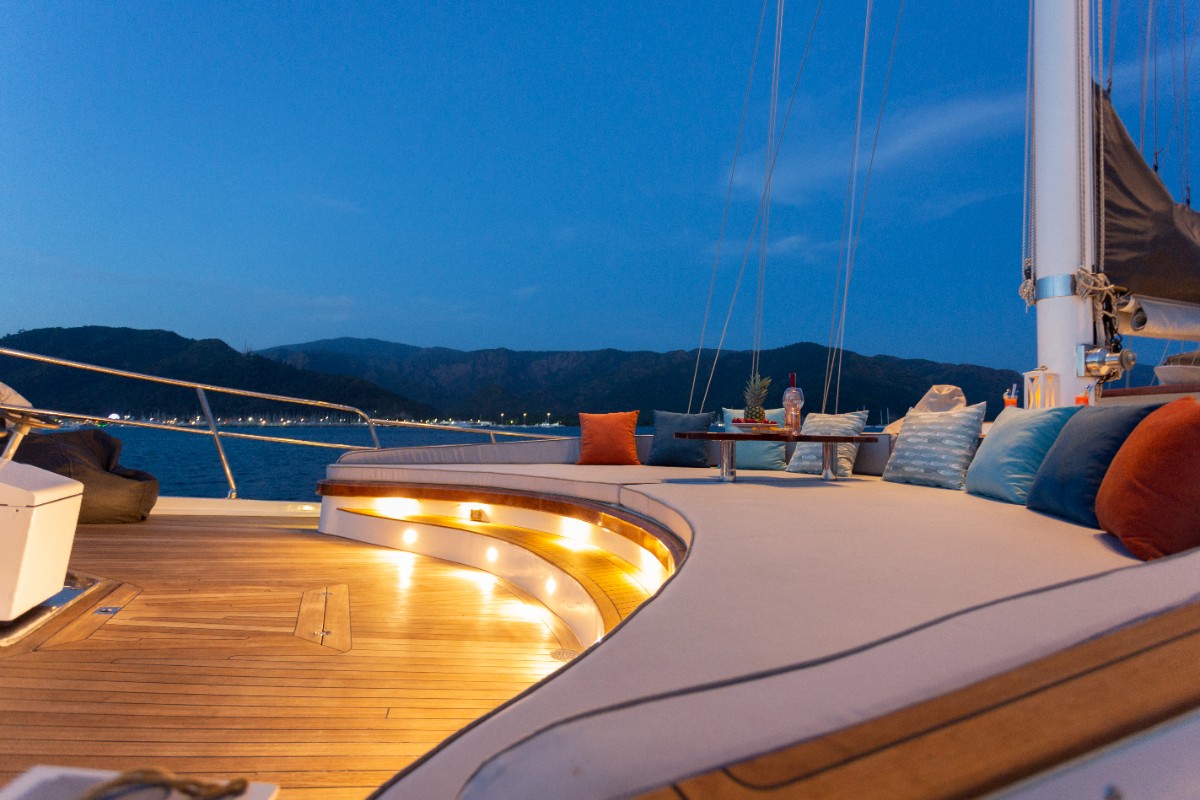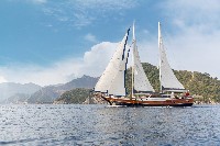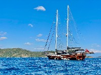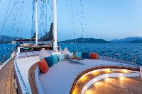 Diva Deniz is a 29-meter luxury gulet (refitted 2024) available for yacht charter in Turkey, ideal for cruising Bodrum, Göcek, Marmaris, and the Turkish Riviera.She accommodates 12 guests in 6 cabins (2 Master, 2 Double, 2 Twin), all ensuite with private WC & shower. Air conditioning is available in all cabins and salon. A professional crew of 5 ensures premium blue cruise service.Powered by 2 x 450 HP Iveco engines and equipped with Westerbeke generators, watermaker, solar panels, satellite... click to view more...
