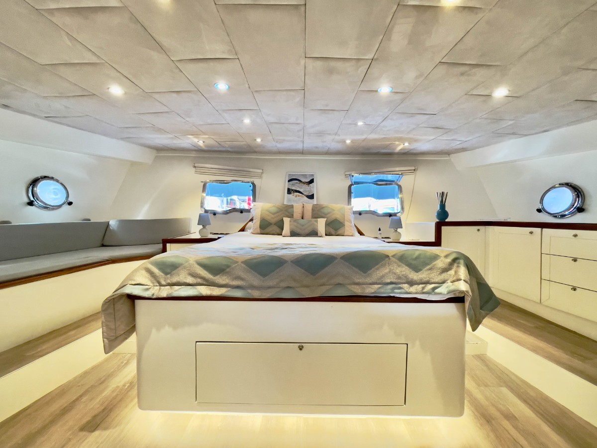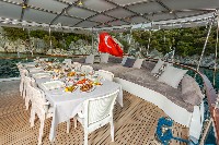 Derya Deniz is a 23.95-meter luxury gulet (refitted 2021) available for yacht charter in Turkey, ideal for cruising Bodrum, Göcek, Marmaris, and the Turkish Riviera.She accommodates 10 guests in 5 cabins (2 Master, 3 Double), all ensuite with private WC & shower. Air conditioning is available in all cabins and salon. A professional crew of 4 ensures a comfortable blue cruise experience.Powered by 2 x 280 HP Iveco engines and equipped with Kohler generators, watermaker, solar panels, satellit... click to view more...