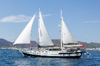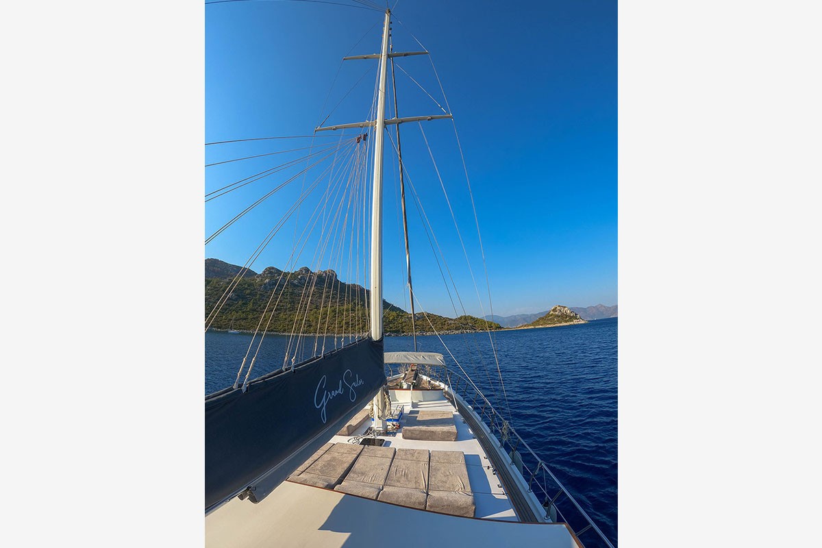 Grand Sailor is a 24-meter luxury gulet (built 2020) available for yacht charter in Turkey, ideal for cruising Bodrum, Göcek, Marmaris, and the Turkish Riviera.She accommodates 8 guests in 4 cabins (2 Master, 2 Double), all ensuite with private WC & shower. Air conditioning is available in all cabins and salon. A professional crew of 4 ensures a comfortable blue cruise experience.Powered by a 440 HP MAN engine and equipped with twin Kubota generators, watermaker, solar panels, satellite Smar... click to view more...