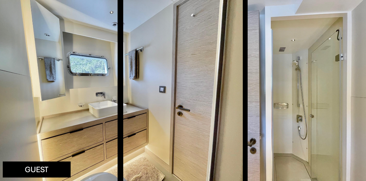 The bathrooms combine sleek, modern design with high-end finishes, offering a level of comfort and elegance rarely found in an explorer yacht of this size.