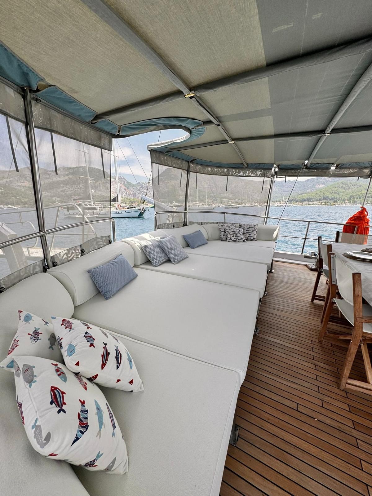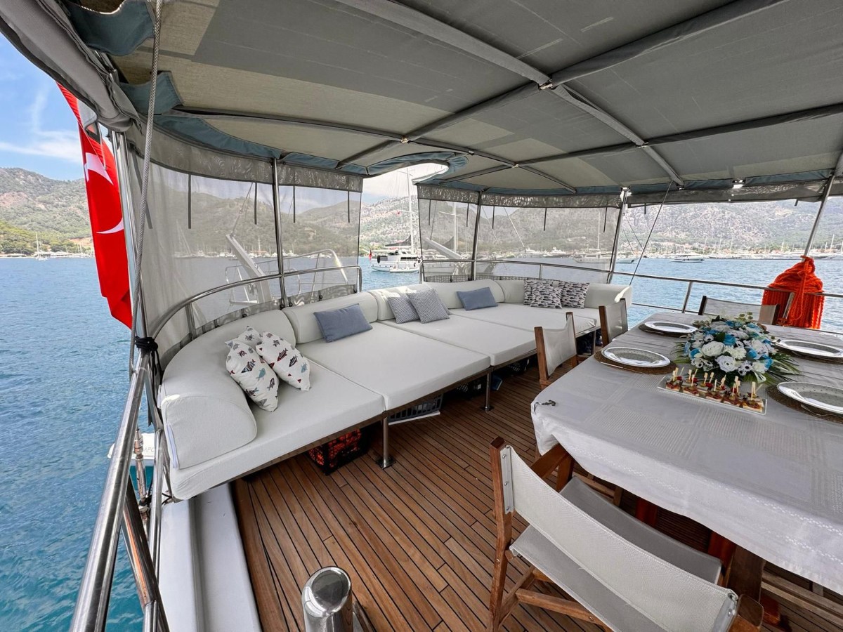 2015 yılı yapımı olan 25 metrelik modern guletimiz, geleneksel denizcilik ruhunu günümüzün konfor anlayışıyla bir araya getirmektedir. Fethiye ve Göcek’in eşsiz koylarında unutulmaz bir mavi yolculuk deneyimi sunmak üzere tasarlanan teknemiz, geniş yaşam alanları ve yüksek hizmet kalitesiyle öne çıkmaktadır. 2026 yaz sezonu için rezervasyonları kabul etmeye başlayan guletimiz, misafirlerine her detayında titizlikle planlanmış bir tatil vadetmektedir.
