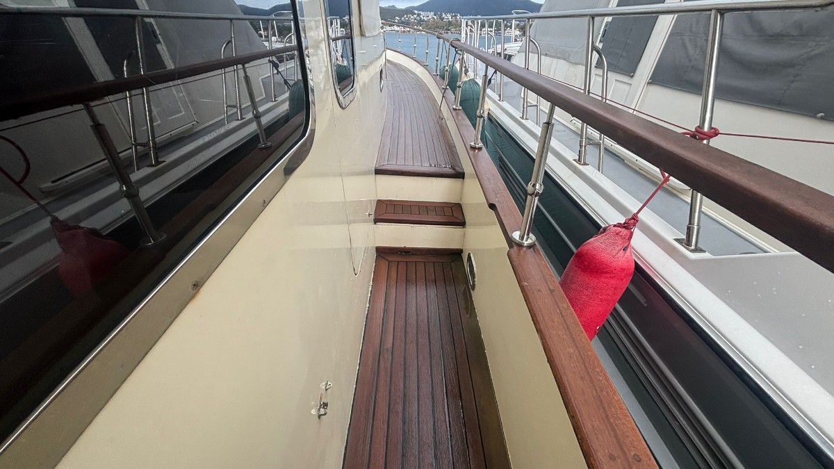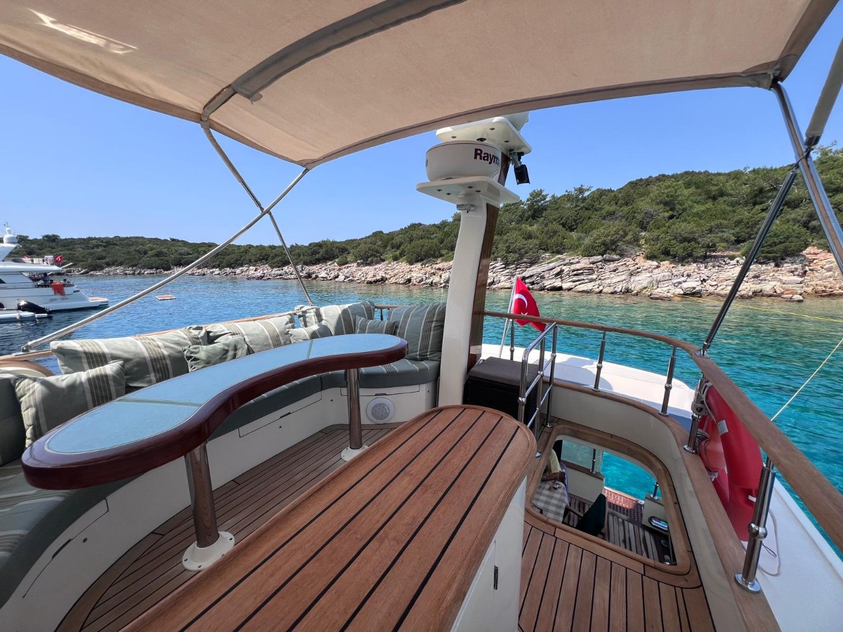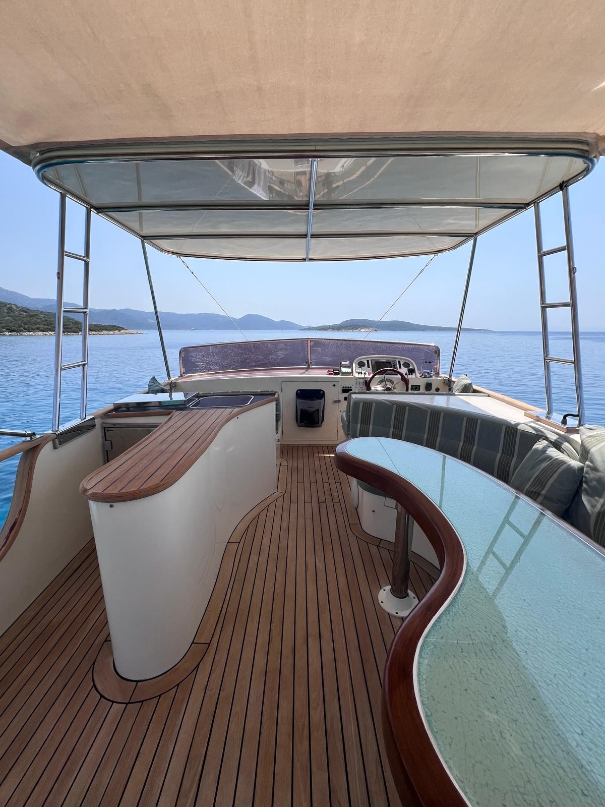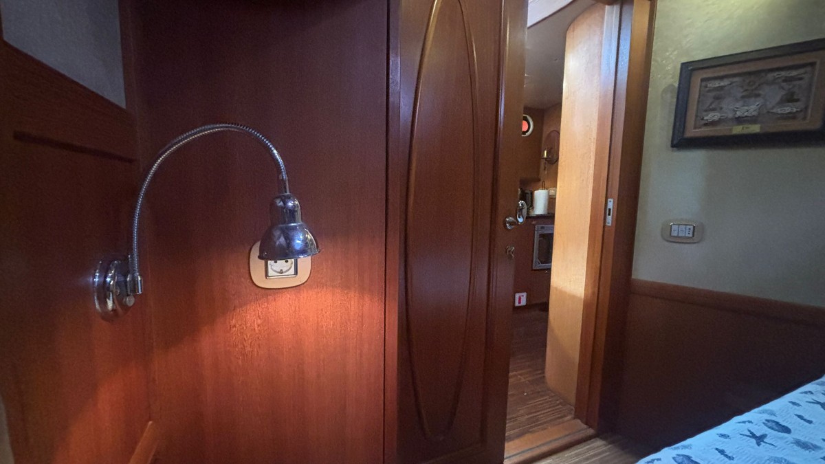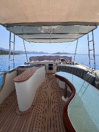 - Wooden interior decoration, dimmable interior and cockpit lighting, teak floors, large sunbathing area Deck, swimming platform/ladder, Opacmare telescopic gangway, separate crew cabin/shower/toilet