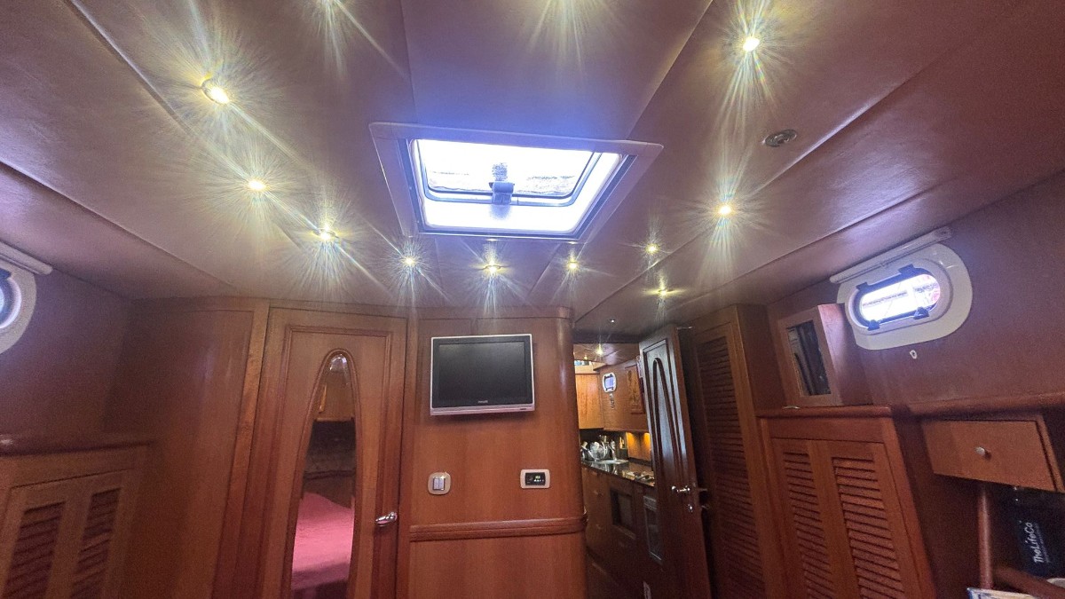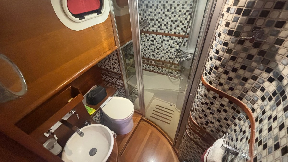 -Raymarine autopilot/remote control, 11 kVA Onan generator, 1140 W two groups of solar panels/Victron MMPT, -3000 VA Victron inverter, Oceanair/Lewmar hatches and portholes, electric toilets