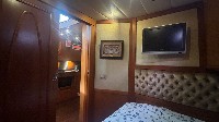 - Dual-zone (flybridge/salon) DVD/CD/Music/Home theater system, 32" LG TV with lift, Raymarine 60 drc satellite antenna, TVs in cabins