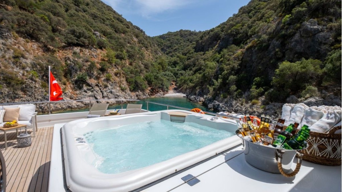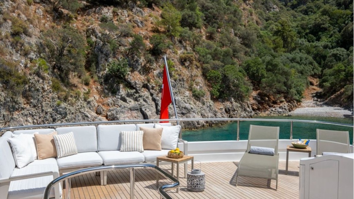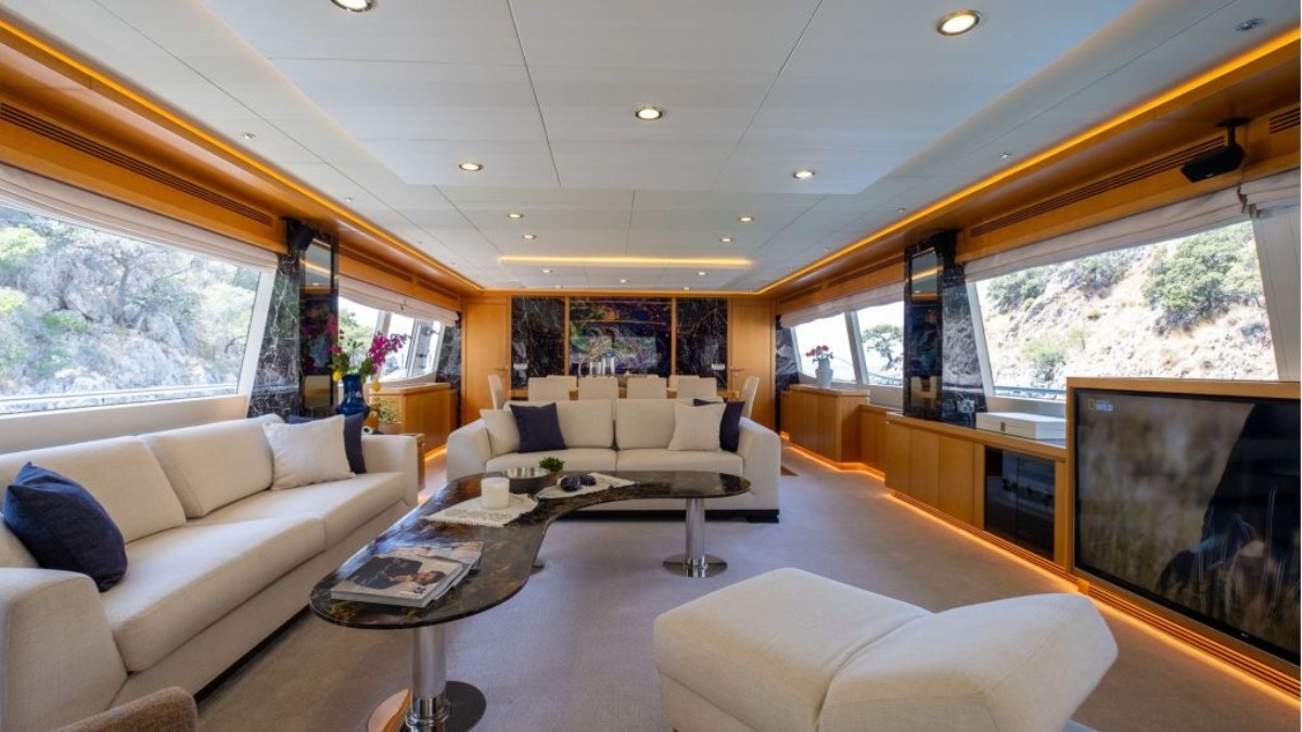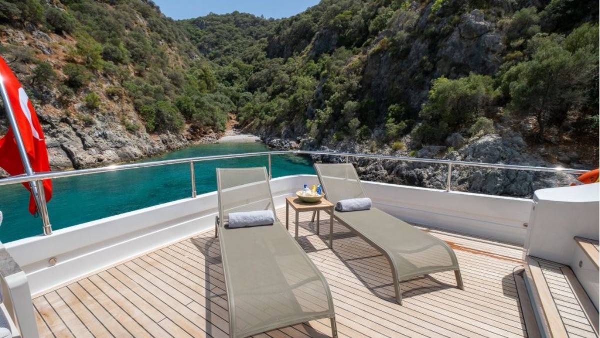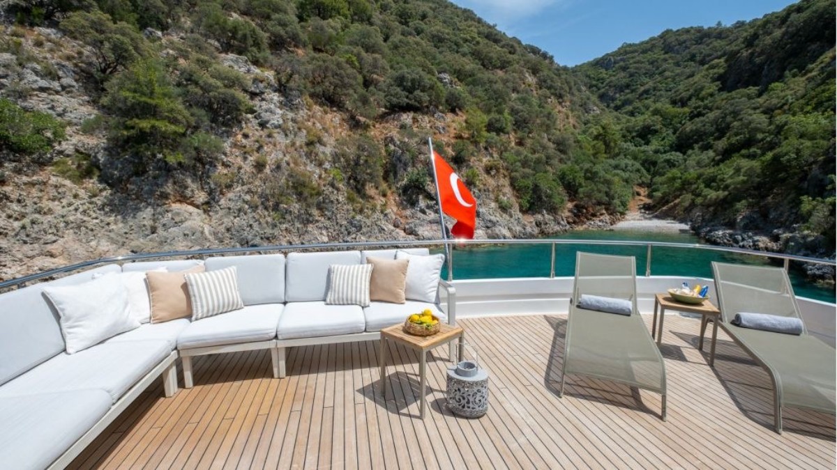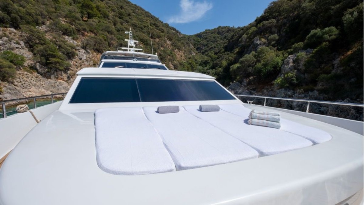 Powered by 2 × 2750 hp MTU engines, Panfeliss cruises comfortably on Turkey’s turquoise coasts or explores extended itineraries, blending performance with modern luxury.