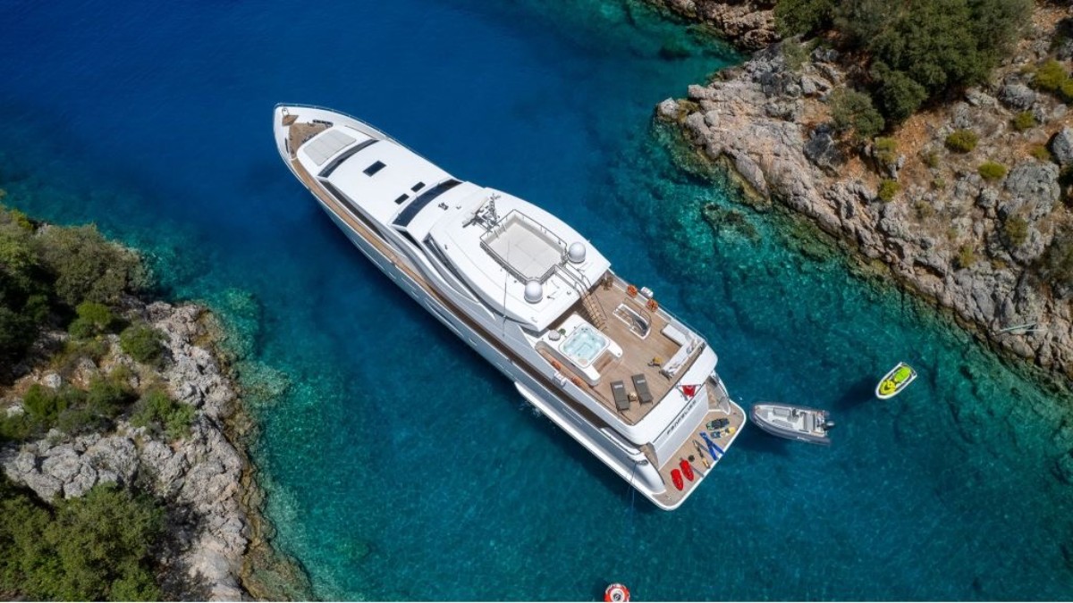 Panfeliss is a 37.50 metre luxury motor yacht custom built by Mengi-Yay in 2009 and extensively refitted in 2021, available for premium yacht charter from Bodrum and Turkish waters.