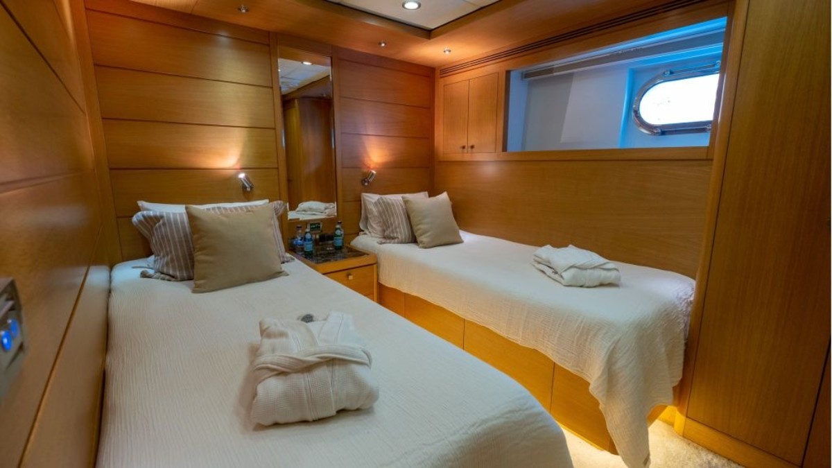 She accommodates up to 12 guests in 5 spacious cabins (including Master, VIP, Double, Twin and Triple cabins), each with ensuite facilities and air conditioning — ideal for families, groups of friends, or bespoke luxury vacations at sea.