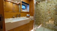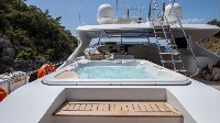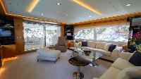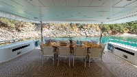 The yacht is also equipped with a superb range of water toys and activities such as Jet Ski, 2 Seabobs, Sea Scooter, wakeboard, monoski, SUP, ringo, 3-person banana, canoe, scuba gear and fishing equipment, and a tender with 70 HP Yamaha — making waterside fun an integral part of the charter experience.