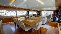 Panfeliss features generous outdoor and indoor spaces for alfresco dining, relaxing lounges, and social gatherings. Entertainment options include Wi-Fi, smart TVs in salon and cabins, a movie & music library, outdoor sound system, and karaoke.