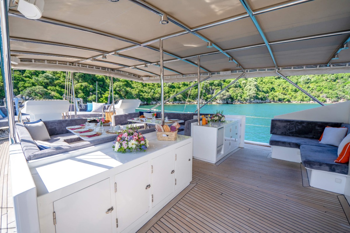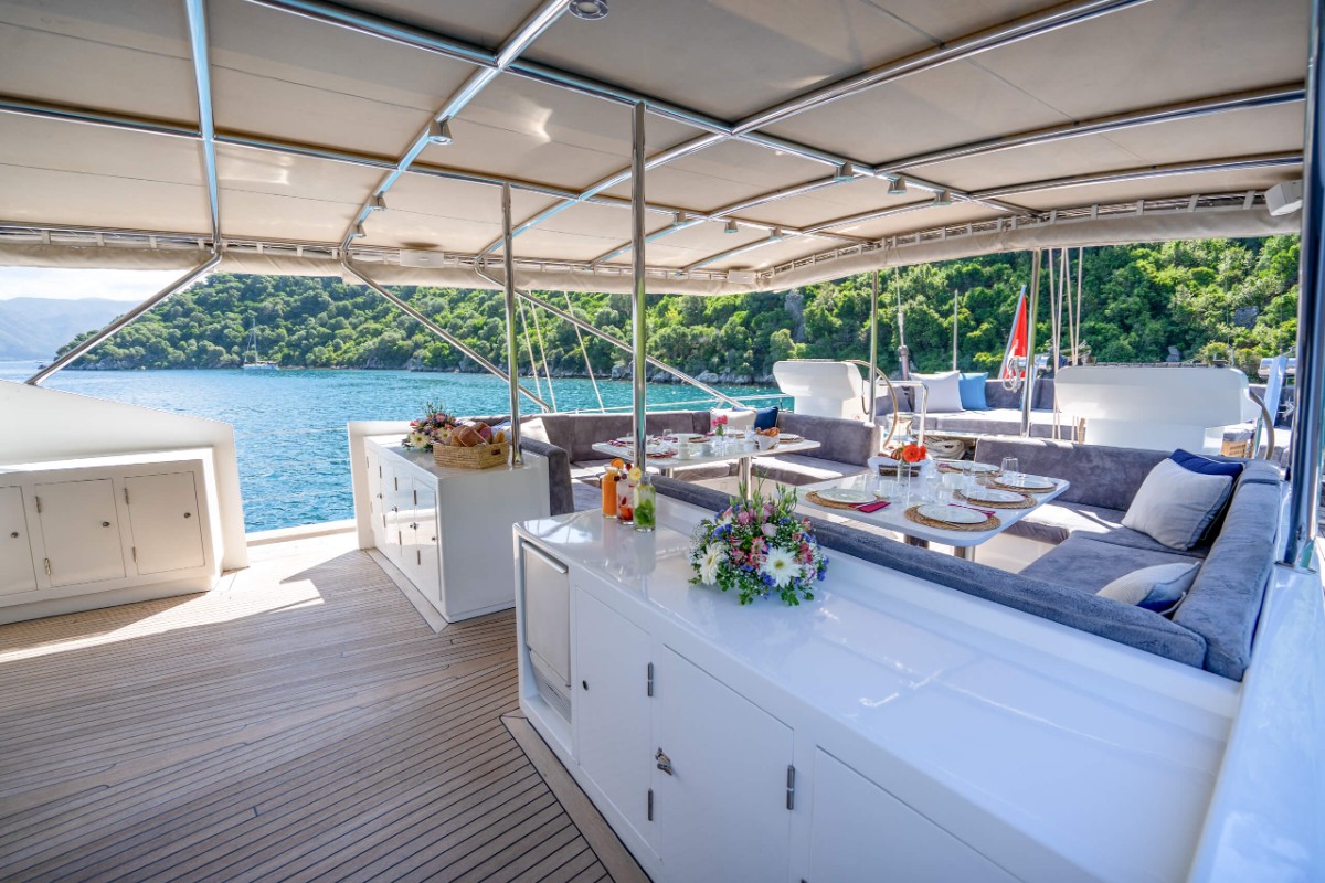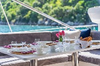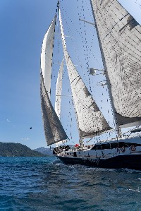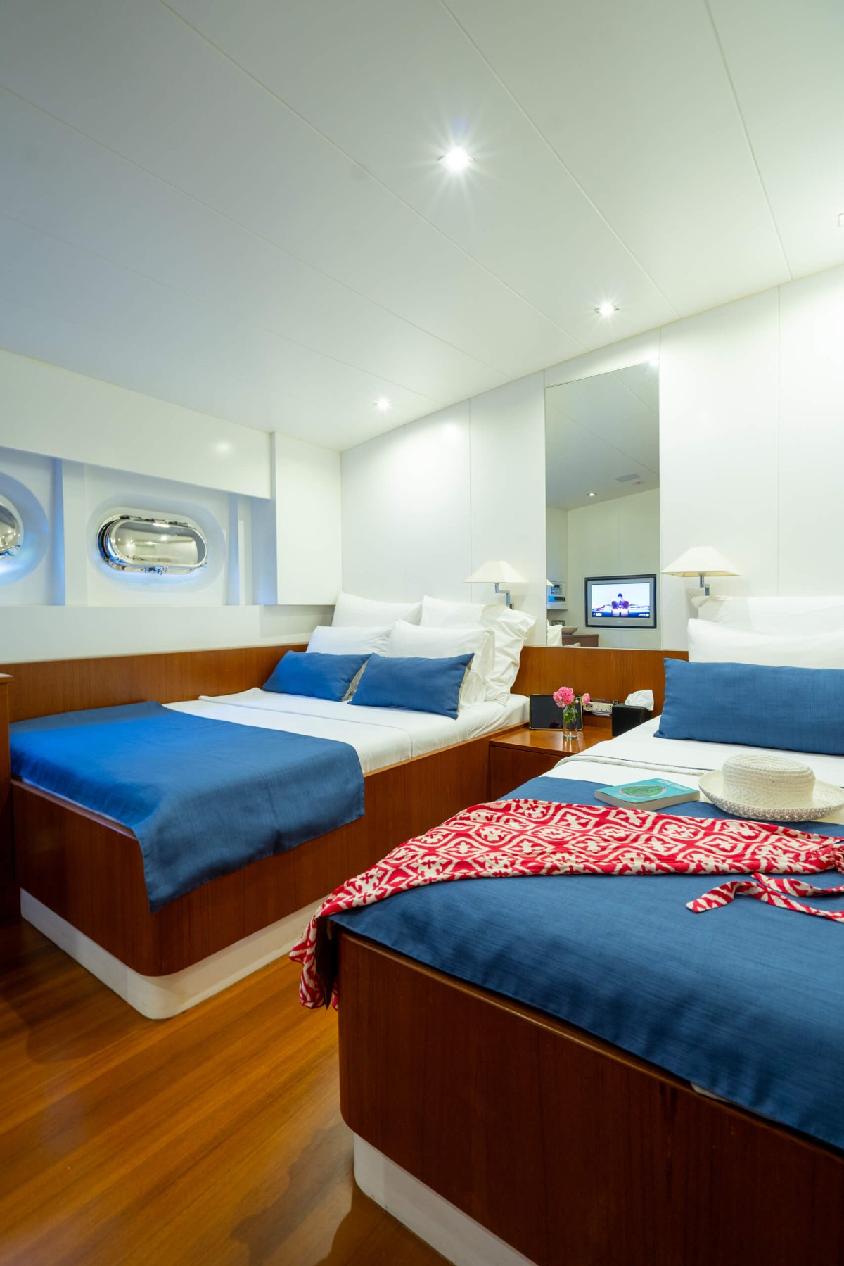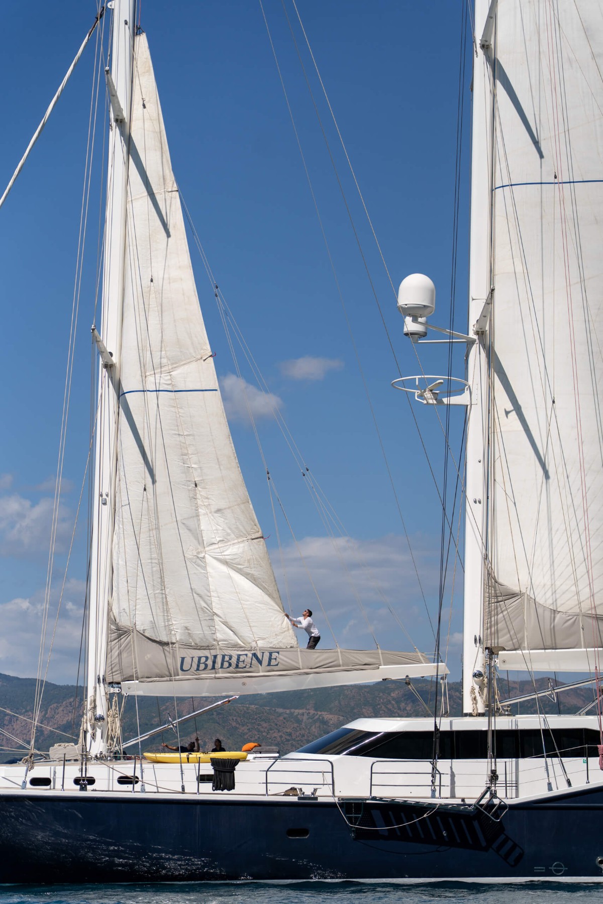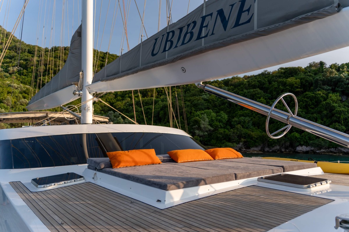 Ubi Bene is a 44-metre luxury motor sailer (gulet) available for yacht charter in Turkey and the Greek Islands, refitted in 2020 and uniquely designed with an expansive beam and flexible sailing performance. She accommodates up to 10 guests in 5 cabins, with a layout typically including 3 double and 2 twin cabins — all with ensuite facilities, air conditioning, and generous space for comfort at sea. A professional crew of 7 ensures smooth operation and personalised service throughout your charte... click to view more...