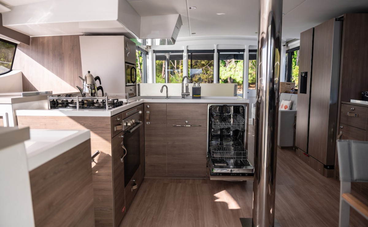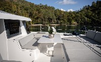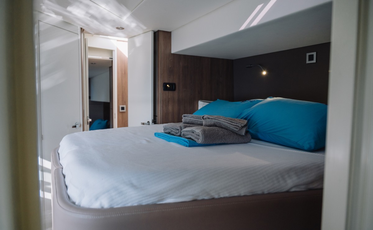 On board, Resif includes air conditioning, an internet hotspot, inverter, electric toilets, a 300-litre fridge and freezer, a 12 kW generator, and a 200 lt/hr watermaker. Her sailing and navigation setup includes a self-tacking jib, full batten mainsail, autopilot, GPS chart plotter, bow thruster, electric windlass, and electric halyard winch. Guests can also enjoy features such as cockpit cushions, cockpit grill, fly sunbathing area, sun deck, sundeck beds, swimming ladder, dishwasher, dinghy, and outboard engine. For travellers searching for a Bali 4.8 catamaran charter in Turkey, Resif stands out as a modern catamaran with strong onboard comfort and practical equipment for a relaxed yacht holiday