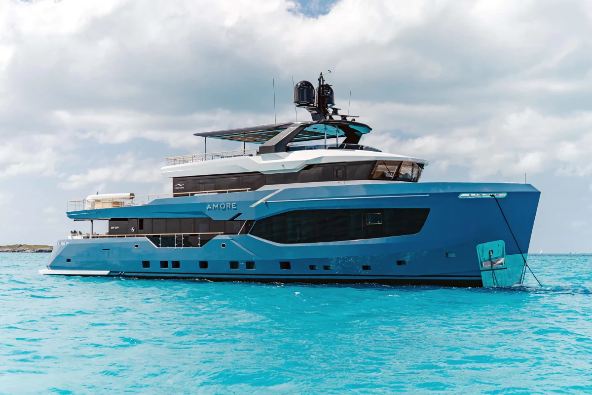 Amore is a modern 37.13 m luxury motor yacht built by Numarine in 2022 and styled with interiors by Can Yalman, now available for premium yacht charter.