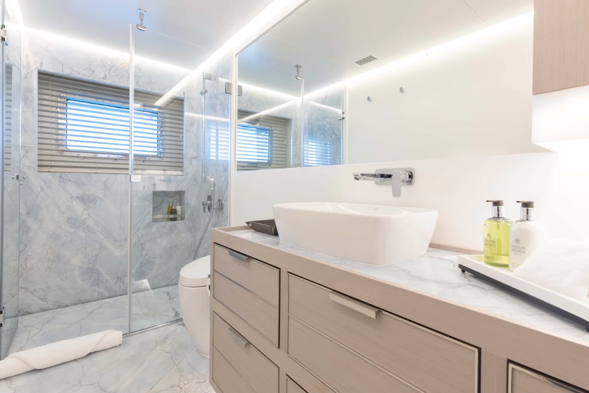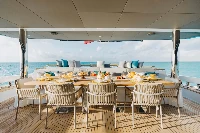 A superb selection of water toys — including 2 Jet Skis, 2 Seabobs, 2 foilboards, paddleboard, snorkelling gear and waterslide — amplifies the fun and adventure on the water. Two tenders, including a 12.19 m Pursuit chase tender, make shore excursions effortless.
