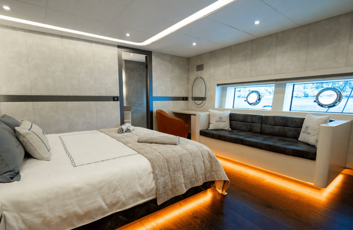 North Wind is a magnificent 47-metre luxury gulet built in 2023, offering a premium blue cruise experience in Turkey and the Greek Islands. She accommodates up to 10 guests in 5 elegantly appointed cabins — including 1 Master, 3 Double, and 1 Twin — all with ensuite facilities and air conditioning, perfect for families, friends, or groups seeking comfort and style at sea. A professional crew of 8 ensures attentive, personalized service throughout your charter. North Wind’s interior and exterior ... click to view more...