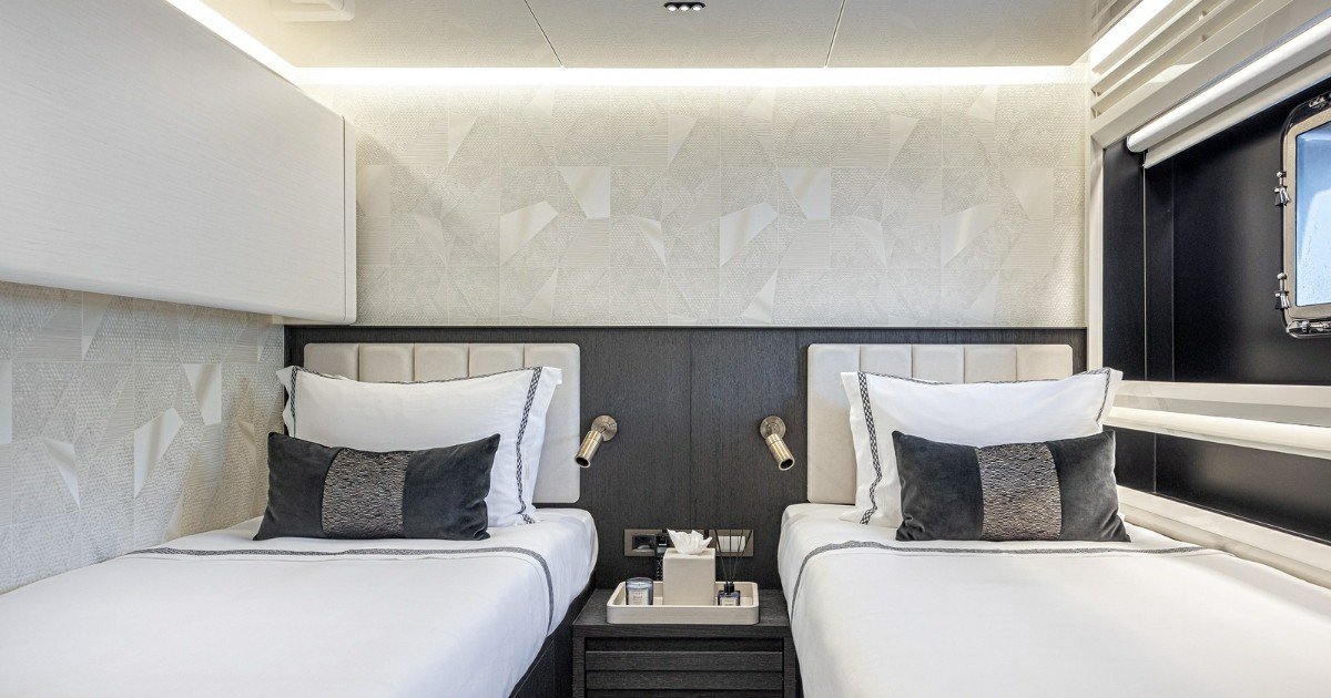 Powered by twin Caterpillar engines, Oculus cruises comfortably while offering an exceptional range for extended itineraries — perfect for discerning charter guests seeking unforgettable experiences across the Mediterranean and beyond.