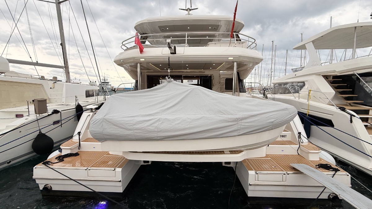 2025 AQUILA 50 PC I NEW COMER shipped to Turkiye directly3 cabins 3 head/shower + crew cabin versionAvailable in Türkiye I very low engine hrs. 2x480 VOLVO ENGINES Bow thrusters x 2 - port and stbd hull - Sleipner E170/250TC-24v - thruster control at upper helm Raymarine Radar - Quantum 2 Q24D Radome color scanner 18"Generator 18kw 50HZ (240v) with sound enclosure, remote controlWater maker 350 L/HChilled water air conditioning - V50-50000 BTU chiller for three cabin version ... click to view more...